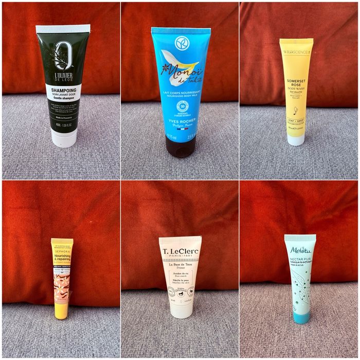 🌸 Articles de maquillage / soins du visage, du corps et des cheveux, accessoires … 🌸 - 1 tube goût pomme / cannelle Hydratis - 1 tube gout fraise HyDrop - 1 sérum à l’acide hyaluronique Mixsoon - 1 crème solaire Mixsoon - 1 gelée crème nettoyante Yoo-ma - 1 highlighter ( teinte claire ) Joséphine - 1 mascara ( teinte Leila ) Joséphine - 1 fard à paupières métallique ( teinte Roseline ) Joséphine - 1 crème lactée hydra apaisante Patyka - 1 illuminateur crème éclat Mádara - 1 brosse nettoyante pour le visage - 1 botte de Noël Blissim - 1 brosse exfoliante pour le visage - 1 rouge à lèvres Sephora - 1 brume pailletés corps Shiny Date - 1 réhausseur de teint Fenty Beauty ( VENDU ) - 1 sébium Bioderma - 1 gel pour cheveux bouclés Luxéol - 1 sérum Bioderma - Maquillage yeux, lèvres et joues All Tigers - 1 huile pour ongles et cuticules Beauty Paris - 1 shampoing lavant doux L’olivier de Léos - 1 lait corps au monoi Yves Rocher - 1 gel douche Wildscience - 1 masque pour les lèvres Sephora - 1 base de teint T-Leclerc - 1 masque exfoliant Melvita D’autres articles ( jouets, puériculture, pulls, tee-shirts, pantalons, robes, combi-short, combi-pantalons, produits de beauté, livres, chaussures etc ) sont disponibles sur mon dressing, n’hésitez pas à venir y faire un petit tour 🌼 Envoi rapide et soigné 🩷