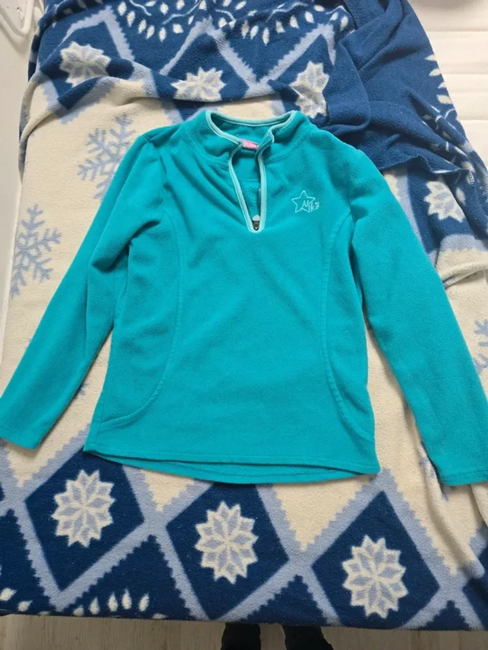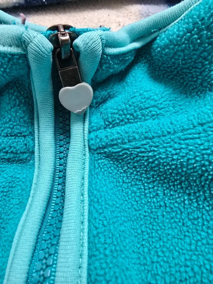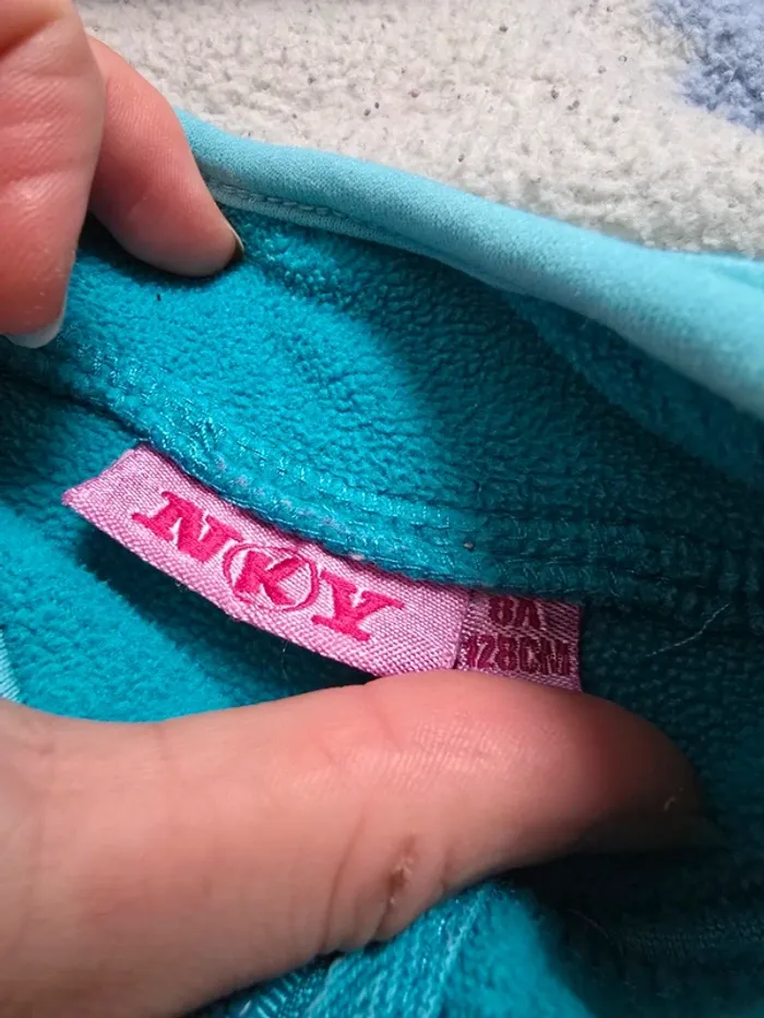 polaire bleu de la marque NKY en taille 8 ans très bon état Petit coeur sur la tirette de la fermeture éclaire au niveau du col.