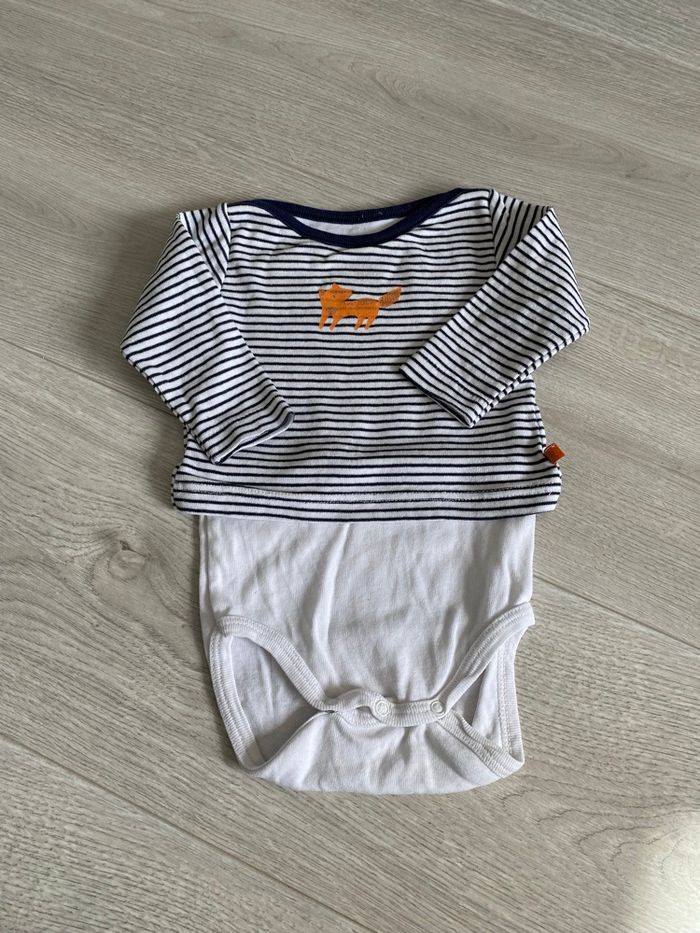 Body à manche longues rayé avec dessin renard Se présente comme un haut et body 2 en 1 Très bon état Taille 6 mois