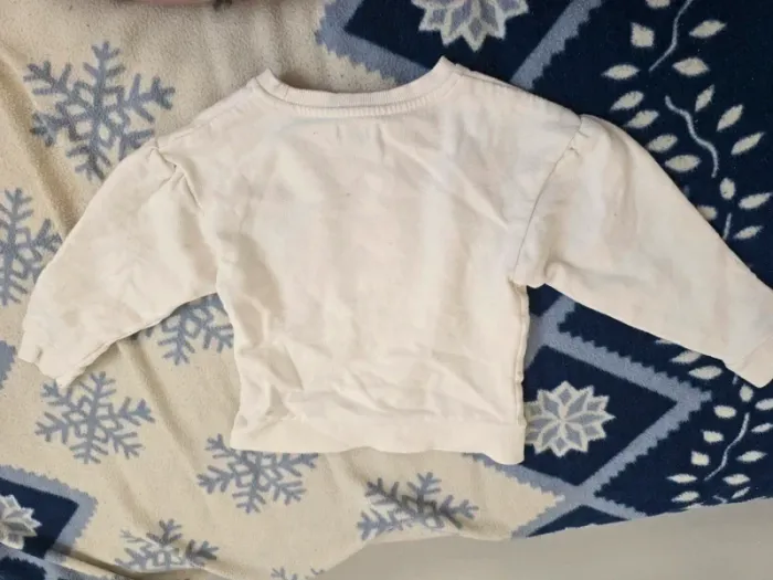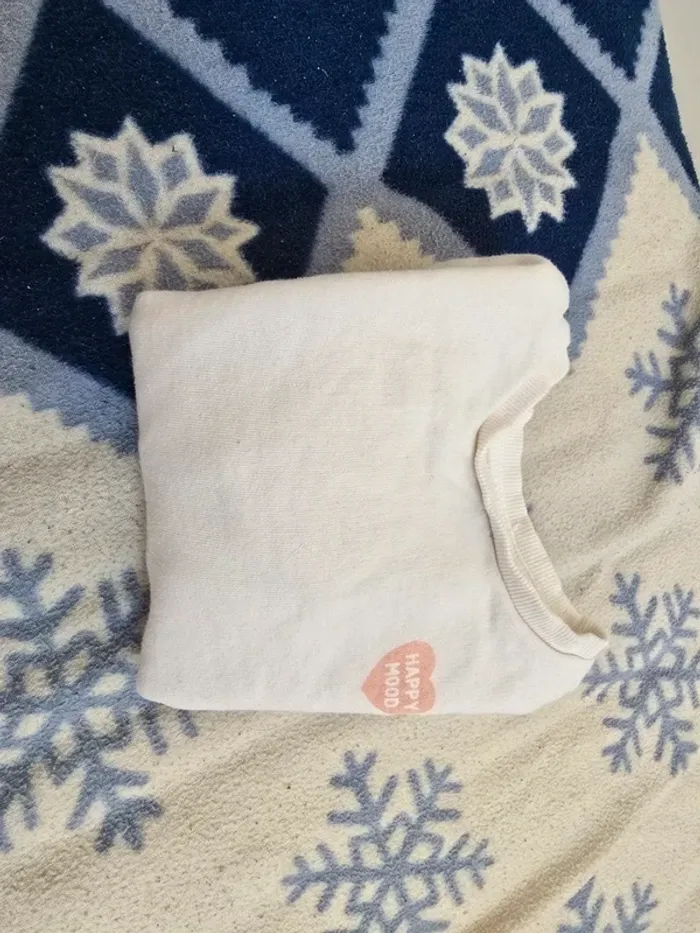 Ce pull blanc de la marque Kiabi est orné d'un petit cœur rose sur le devant, ajoutant une touche mignonne à ce basique. Il est en très bon état, sans taches ni défauts.