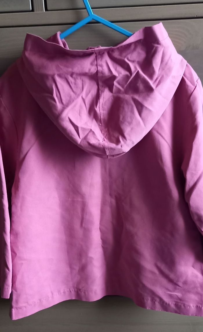 Beste légère rose avec des fleurs et un inscription en haut à droite en violet, avec caouche non détachable, tres bon état, taille 4 ans