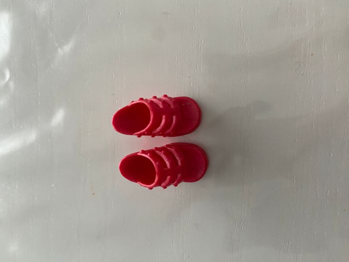 Vends cette paire de chaussures de rechange pour poupée Winx Club. Elles sont de couleur rose vif avec un design à trois brides ornées de petits clous/picots, style talons hauts compensés. État : Très bon état général (voir photos pour les détails). Dimensions : Environ 2,5 cm de longueur (voir photo avec la règle pour précision). Compatibilité : Idéal pour compléter une poupée mannequin Winx (Bloom, Stella, Flora...) ou pour des créations personnalisées. Parfait pour les collectionneurs qui cherchent à restaurer leurs poupées d'origine !