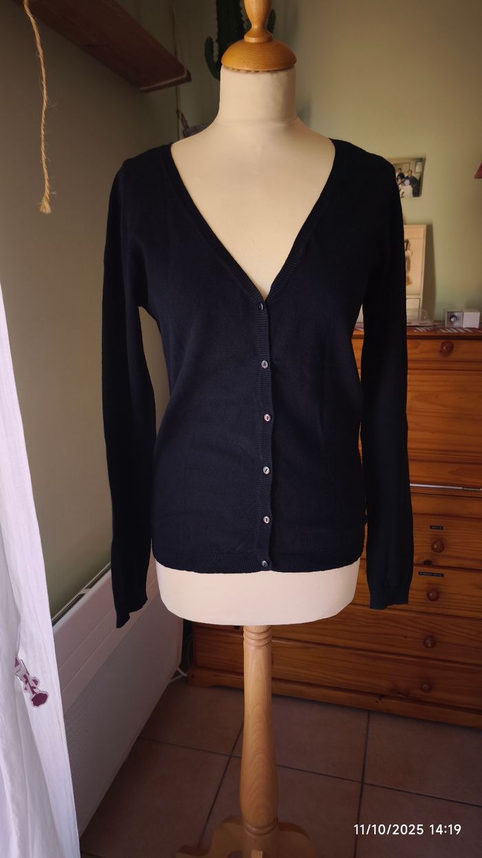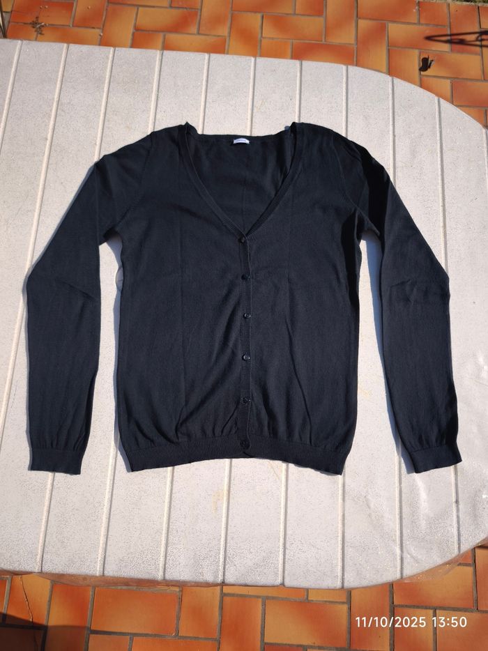 🧥 Cardigan noir manches longues 🧶 100% coton 📏 38/M 📦 Envoi soigné & rapide