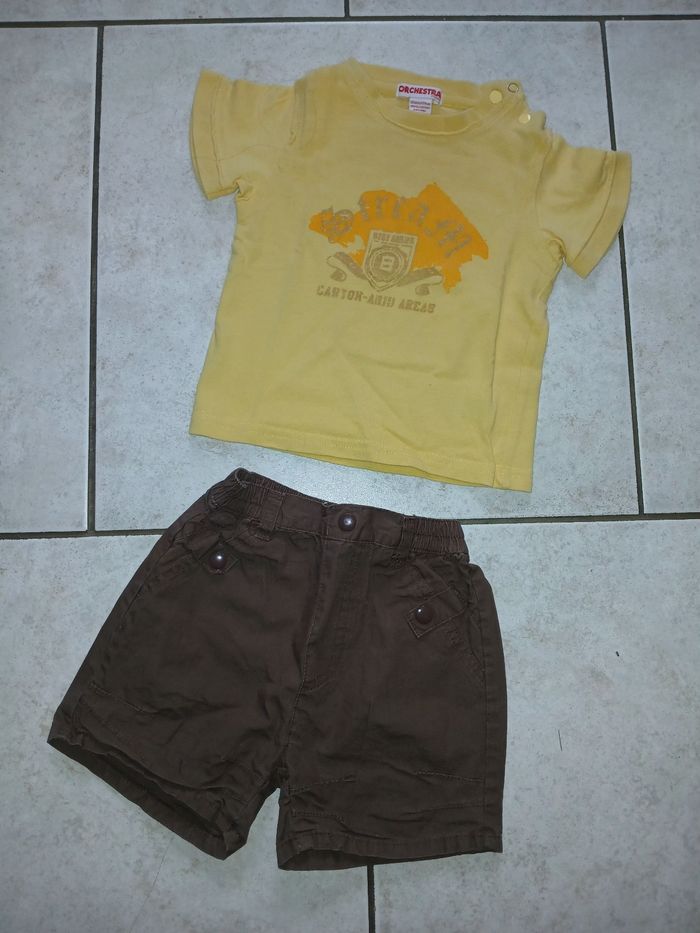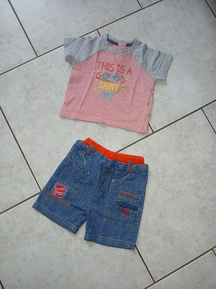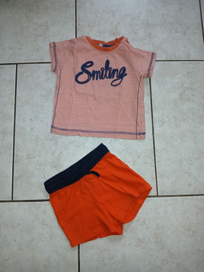 Lot de 7 Ensembles deux pièce short et tee-shirt manche courte taille 12 mois pas d trou pas de tâche différente enseigne 15€ orchestra Vertbaudet bébé rêve Kiabi etc....