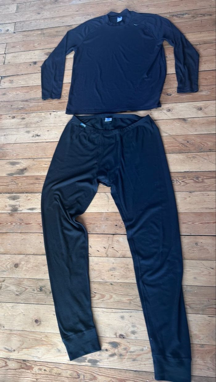 Lot vêtements thermique noir Taille XL Le t-shirt a des bouloches Le caleçon à poche est en très bon état