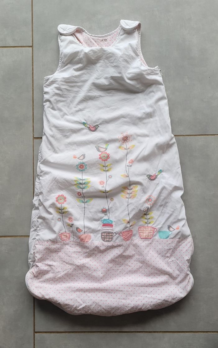 Gigoteuse dans les tons blanc et rose pâle, de la marque Vertbaudet, taille 2/3 ans, en très bon état. Article lavé pour la vente.