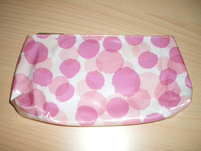 Trousse de toilette ou de maquillage "Clinique" dimensions 23 x 13cm motifs rose à pois matière plastique TRES BON ETAT GENERAL PRIX: 3 EUROS Remise en main propre possible contre paiement en espèce NB: si l'annonce est en ligne c'est que le produit est disponible