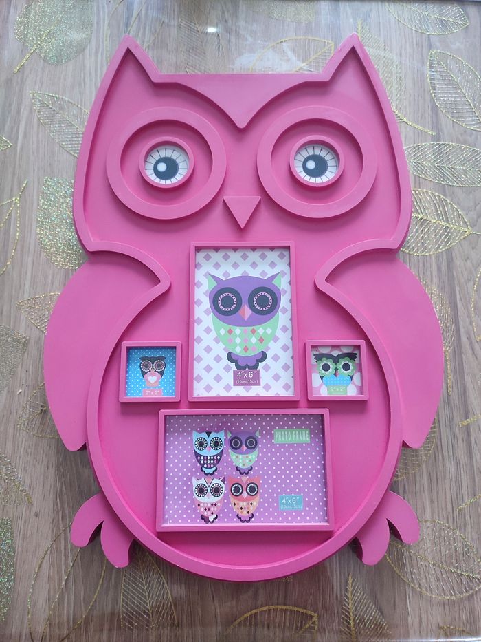 Adorable cadre photo mural hibou rose en bon état