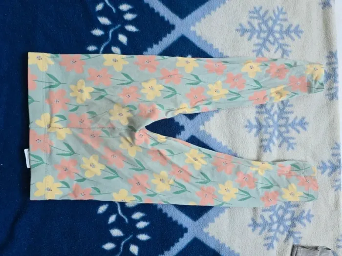 Legging vert motif fleur rose et jaune de la marque kiabi en taille 6 ans Bon état.