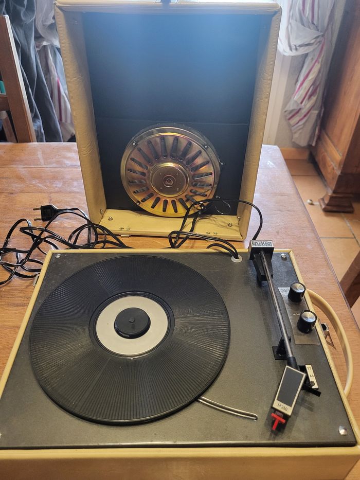 Vintage .en l état .. Le tourne disque marche mais le son ne sort pas du haut parleur