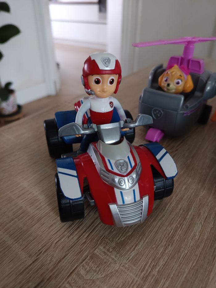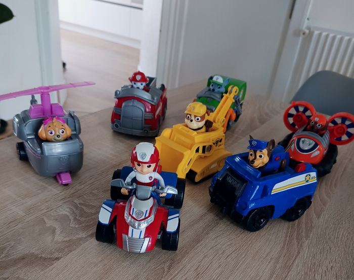 Lot Paw patrol comprenant : - Chase et si véhicule - Marcus et son véhicule - Stella et son véhicule - Ruben et son véhicule - Rocky et son véhicule - Zuma et son véhicule - Rider et son véhicule Les figurines et les véhicules ont été utilisés mais peuvent tout à fait avoir une seconde vie. Envoi mondial relais.