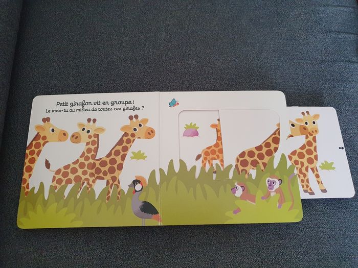 A vendre livre bon appétit petit girafon, en lien avec le zoo de Beauval. Livre avec volet à tirer, soulever, tourner... En très bon état, quelques coins un peu abîmés (voir photo). N'hésitez pas à jeter un coup d'œil sur mon dressing (d'autres livres pour enfants en vente). Une réduction dès 2 articles achetés !