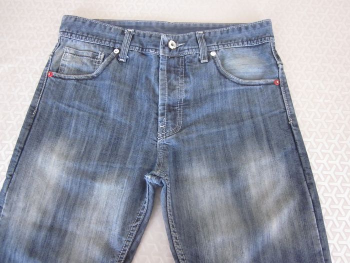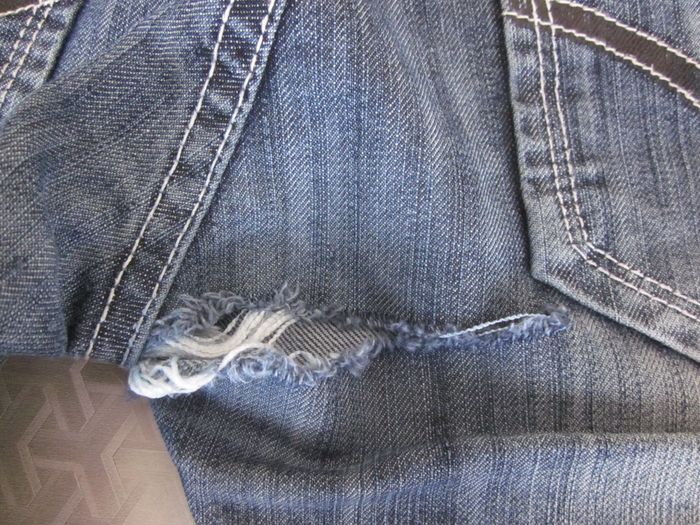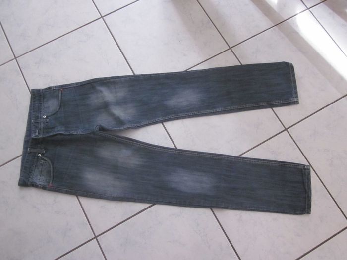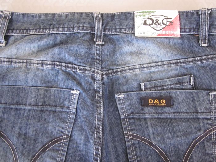 jean d&g, grosse déchirure fesse mais bien reprise par couturière, pratiquement invisible sur dernière photo, T32 soit L, mesure à plat de la taille 42 cm