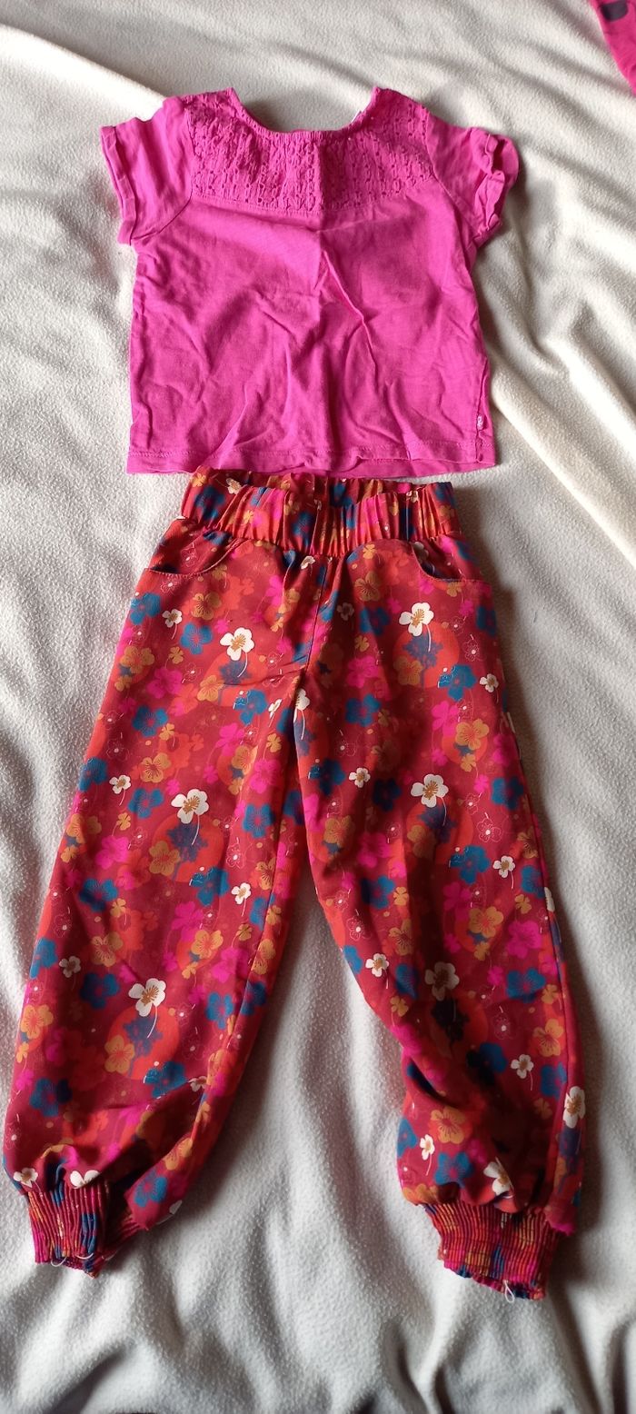 Lot de 2 robes, 1 t shirt manches courtes et 1 pantalon type sarouel. Tres bon état, taille 4 ans