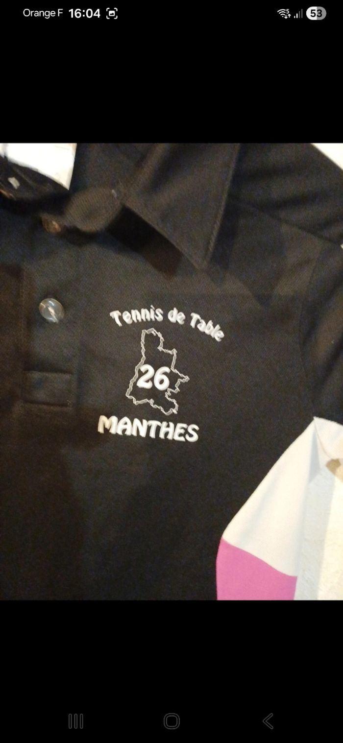 Polo manches courtes avec logo du tennis de table à l avant et sponsor à l arrière