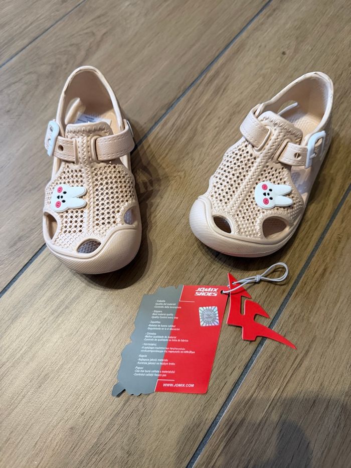 Chaussures sabot style crocs Coloris beige et pin’s lapin Neuve pointure 29