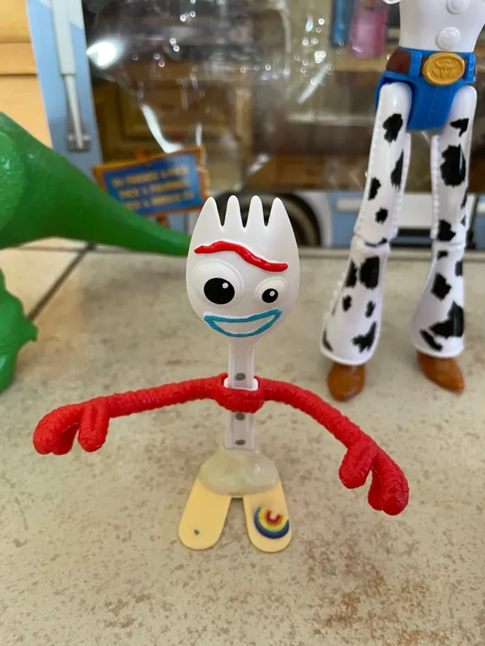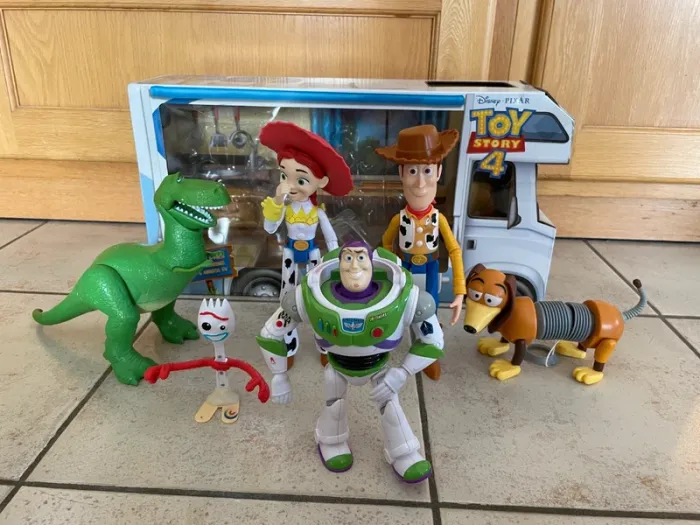 Coffret collector assez difficile à trouver car rare. Coffret composé de 6 jouets Toy Story, en plastique (Buzz, Woody, Jessie, Rex, Zig Zag slinky et Fourchette forky) Figurines articulées (sauf Forky qui est fixe), assez grandes. Le coffret est en carton et en plastique, il représente le camping car du film (quelques traces possibles sur le coffret mais pas "abimé") Le chien Zig-Zag est cassé au niveau de sa partie "accordéon" et pourra être recollé mais il ne fera plus accordéon. Le prix en tient compte. Buzz a des zones de peintures légèrement effacées et des petites traces discrètes. Les autres figurines sont en bon état (Rex et Forky), voire très bon état (Woody et Jessie). J'ai pas mal d'autres figurines de Toy Story dans mes annonces.