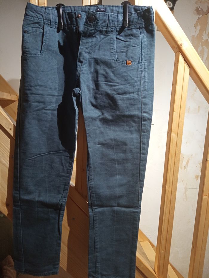 Pantalon Kiabi taille 10 ans garçons, très bon état. Taille ajustable. Poche sur le côté et derrière. Bouton pression. 100% coton.