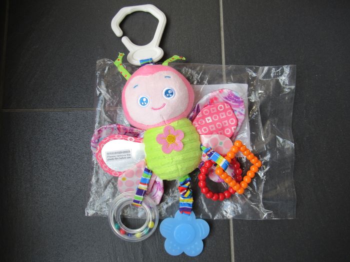 Hochet / mobile à suspendre papillon pour bébé Peut-être suspendu à la poussette, au parc, à la voiture ou ailleurs Stimulant pour bébé grâce au miroir, papier sonore, boucle de saisie, anneau à mordiller, couleurs vives neuf