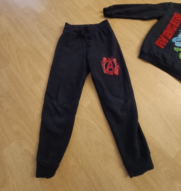 Lot de 3 vêtements garçon taille 6/8 ans 122/128 cm 1 ensemble sweat et jogging bleu marine et multicolore Avengers 1 pantalon de jogging Spider-Man+ écusson Dragon Ball au genou 60 % coton 40 % polyester Très bon état
