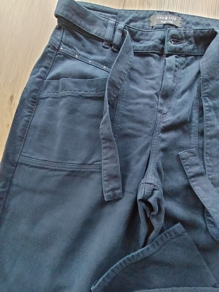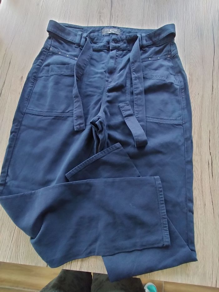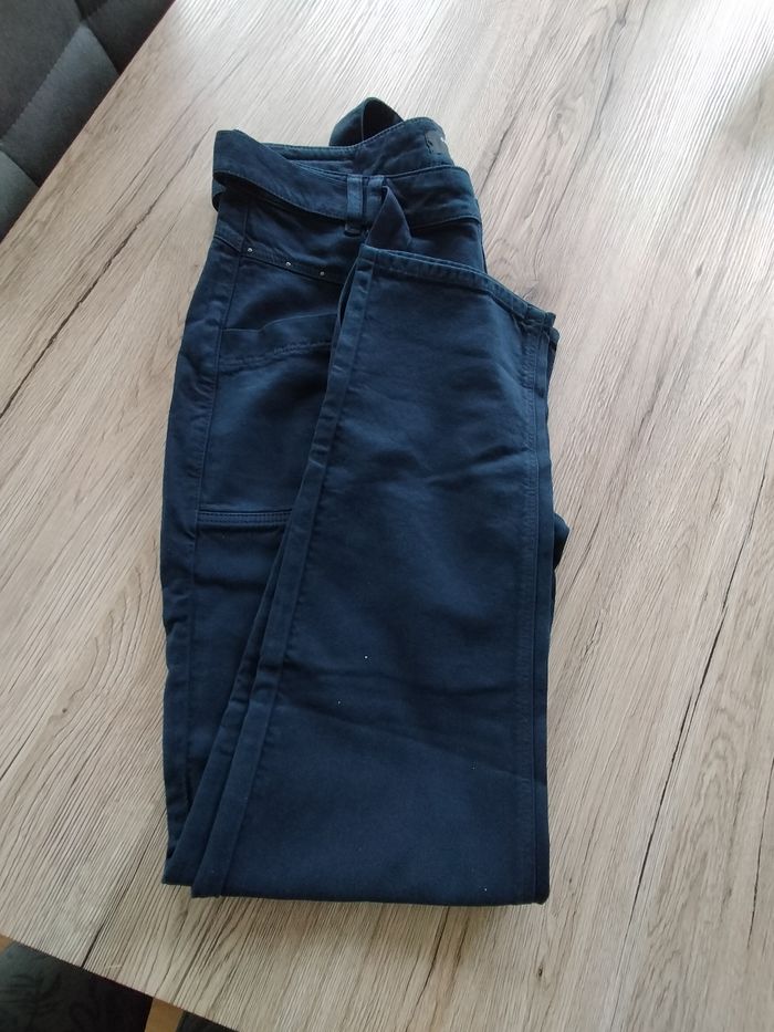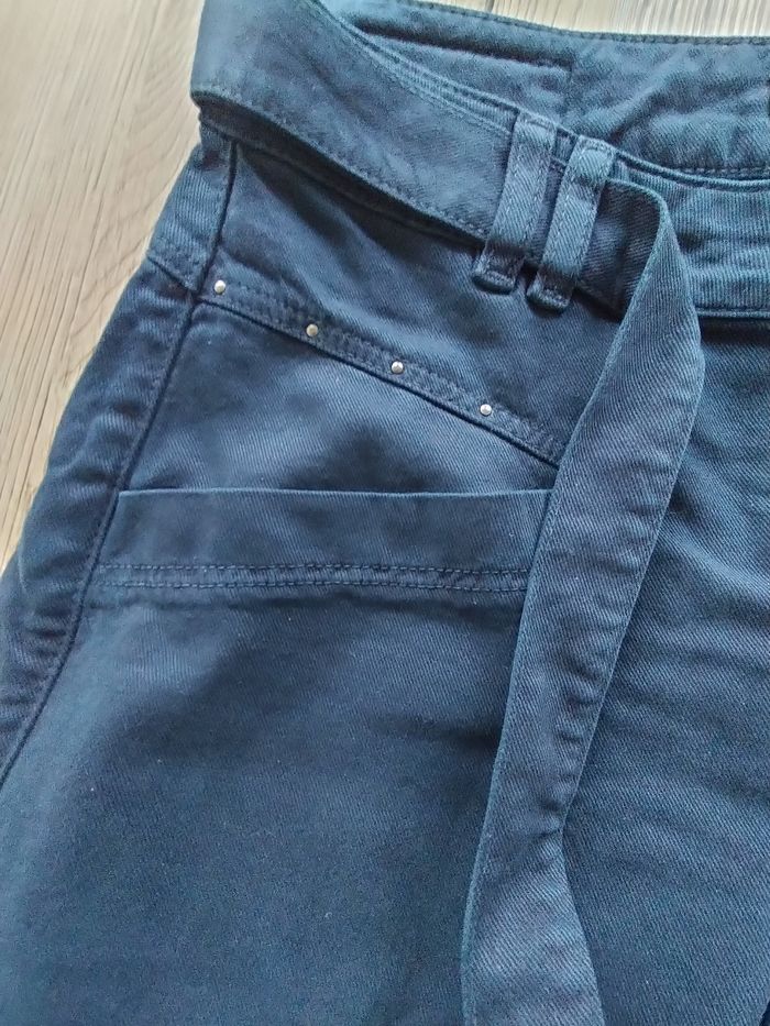 Pantalon marine Taille 38 Taille haute Ceinture amovible en coton En très bon état