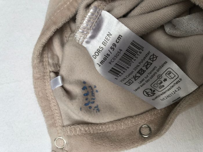Pyjama velours Mes Petits Cailloux 3 mois - photo numéro 4