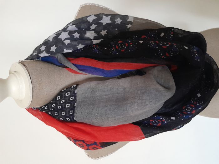 Echarpe tube xxl, imprimé, de forme carré Dimension : 89 x 89cm Matière : 100 % Viscose Marque : Juxin