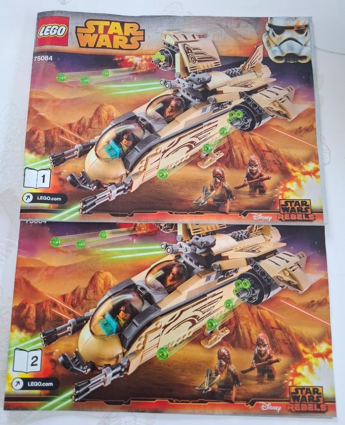 Vaisseau STAR WARS wookie gunship LEGO 570 pièces Il mesure plus de 16 cm de haut, 31 cm de long et 20 cm de large Livré avec les 2 livres de construction Vaisseau démonté. Ne manque aucune pièce
