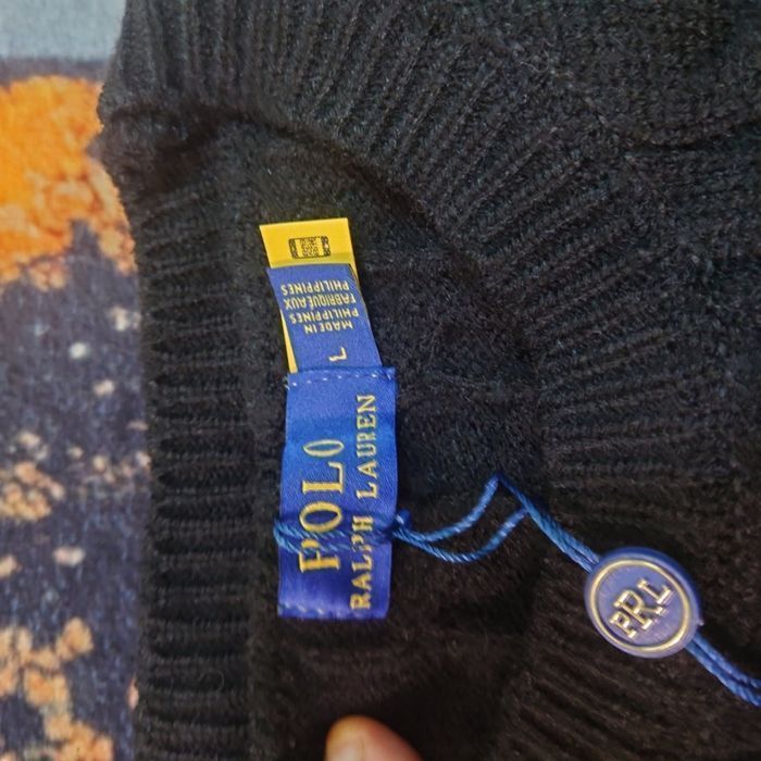 Pull torsadé col rond Polo Ralph Lauren noir logo brodé rouge taille L - photo numéro 6
