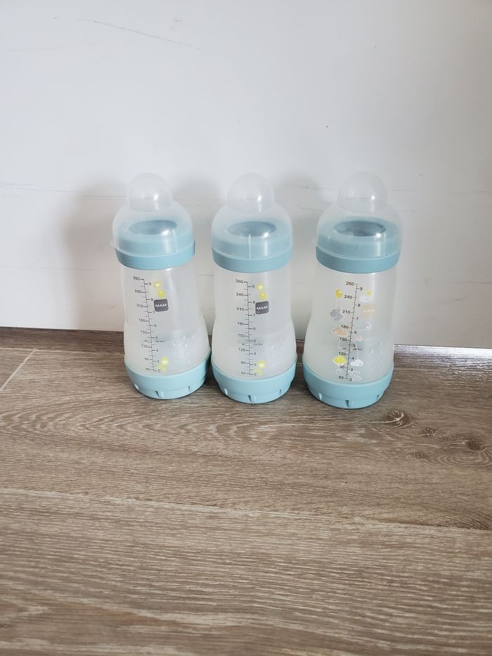 Un lot de 3 biberons 260ml Mam Bleu Très bon état