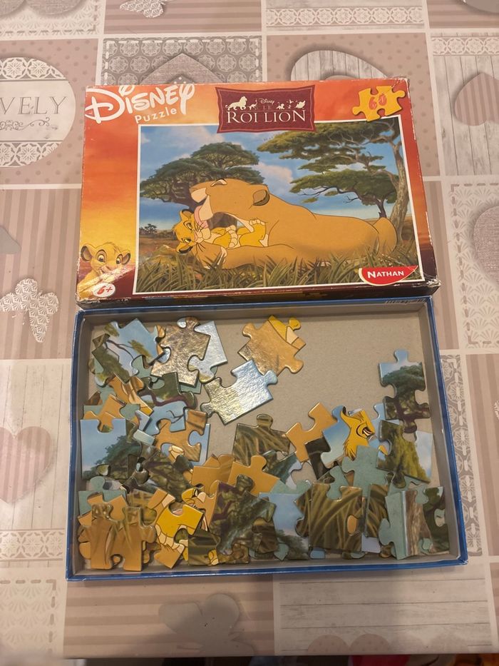 Vend puzzle du roi lion, le carton du haut est abîmé mais pas le reste