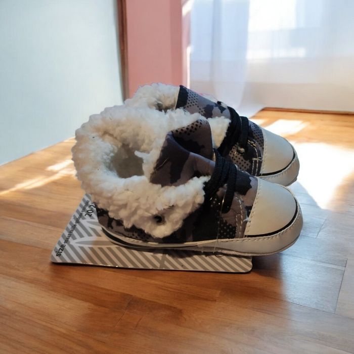 Petites baskets bb neuve jamais utilisé, avec étiquette,motifs camouflage ,9/12 mois 7,4 cm