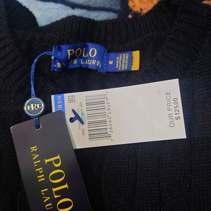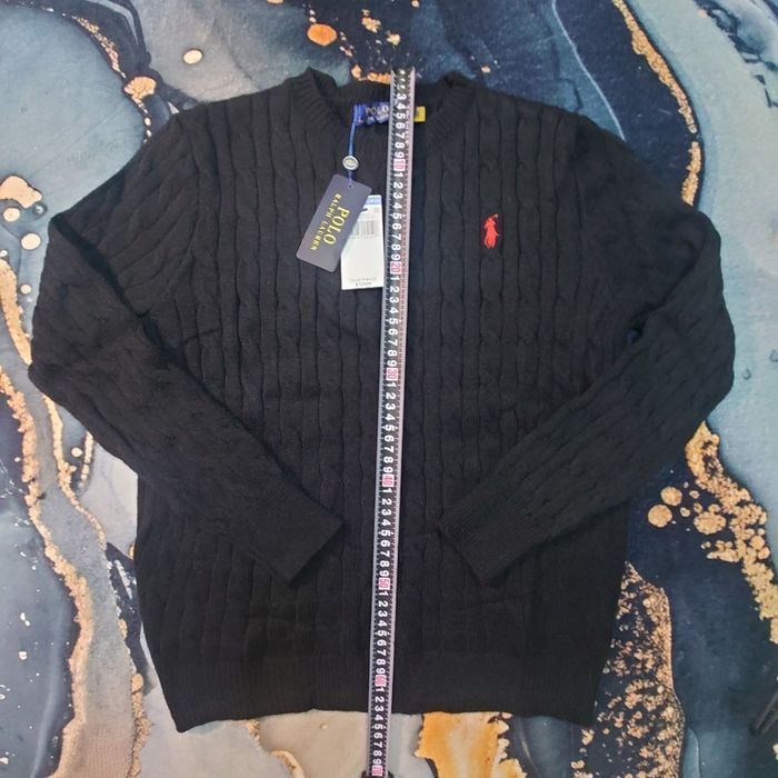 Pull torsadé col rond Polo Ralph Lauren noir logo brodé rouge taille M - photo numéro 4
