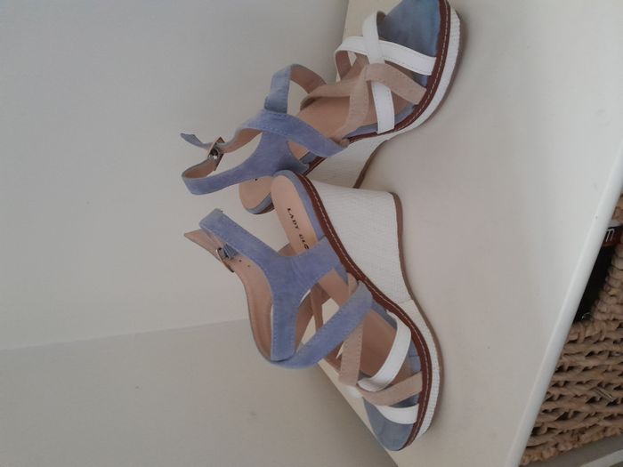 Chaussure été, croiser sur le dessus, talon compenser, avec plate-forme, attache bride Talon : 6cm, Plate-forme : 2,5cm Marque : Lady Glory