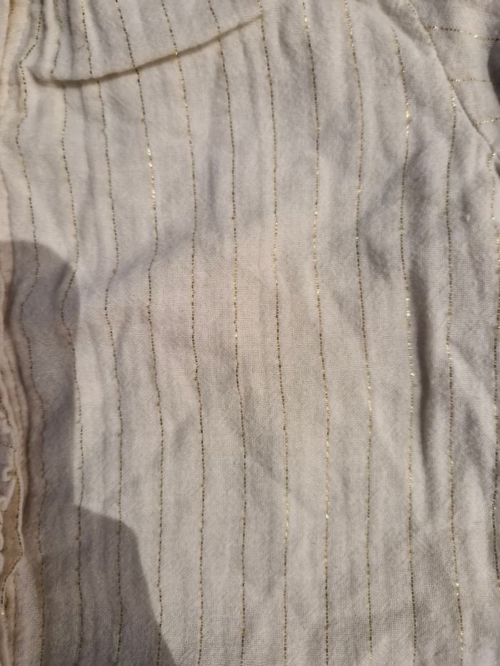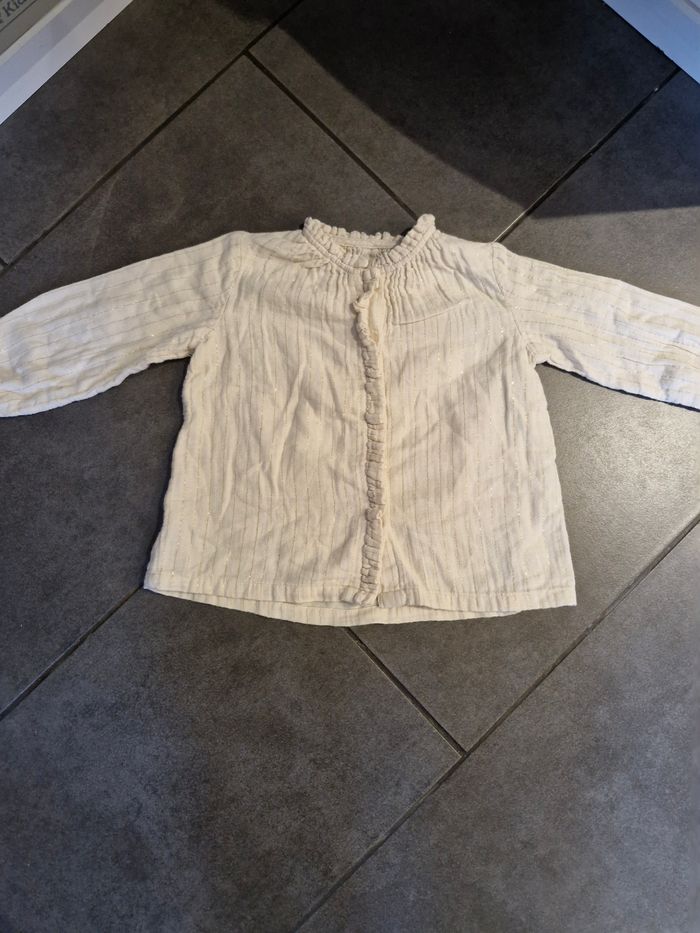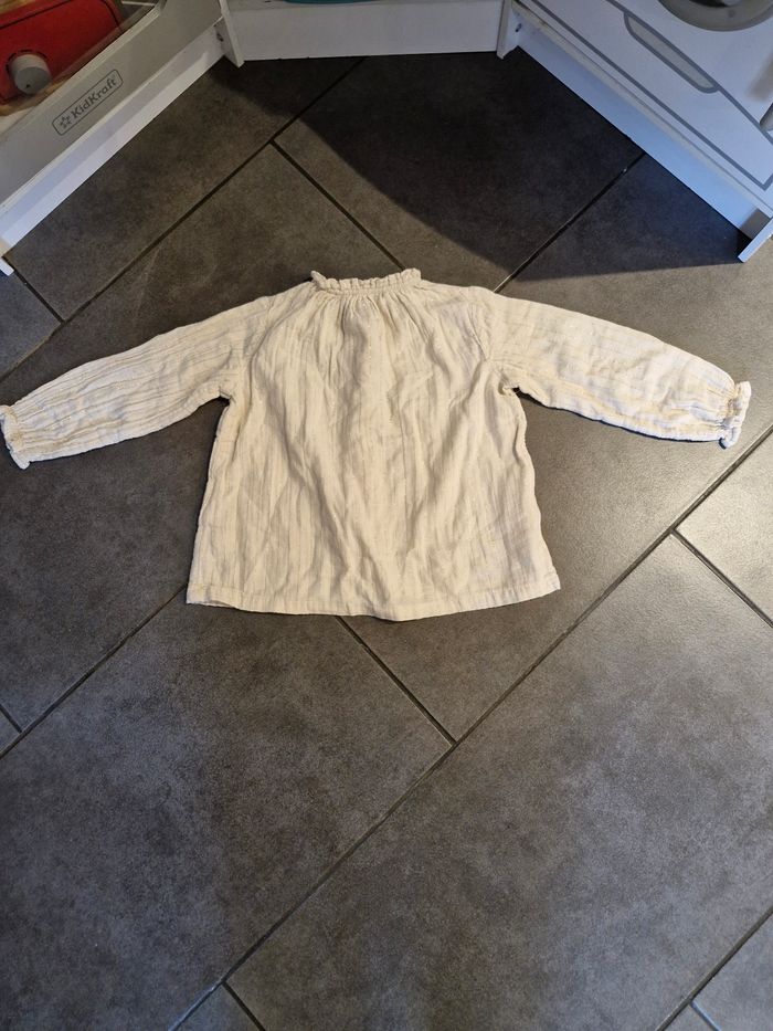 Chemise manches longues fille 👧 Taille 2 ans Marque : Kiabi Blanc avec liseré or Réductions sur les lots activé ☺️ Bac3