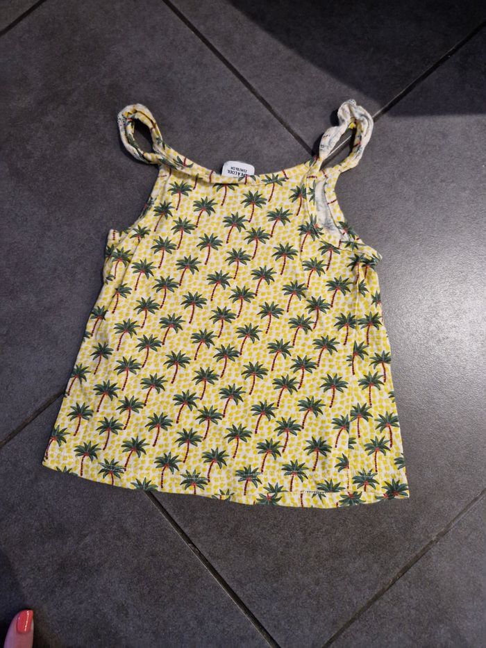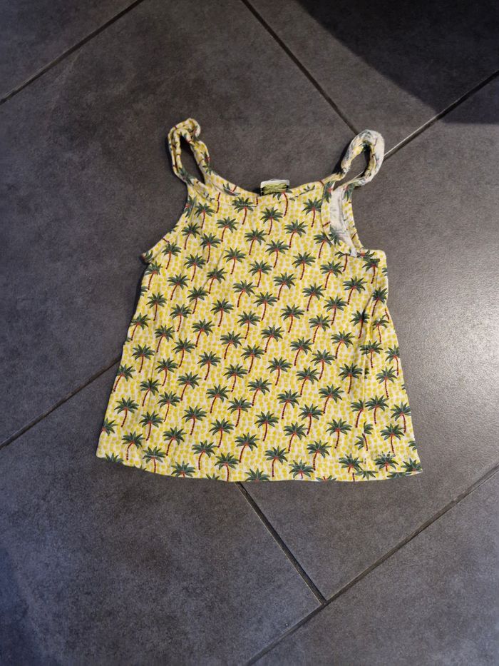 T-shirt à bretelles fille 👧 Taille 2 ans Marque : tape à l'œil Jaune avec petits palmier Réductions sur les lots activé ☺️ Bac3