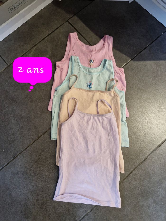 Lot de 4 maillot de corps fille 👧 Taille 2 ans Multicolores Défaut voir photo 📷 Réductions sur les lots activé ☺️ Bac3