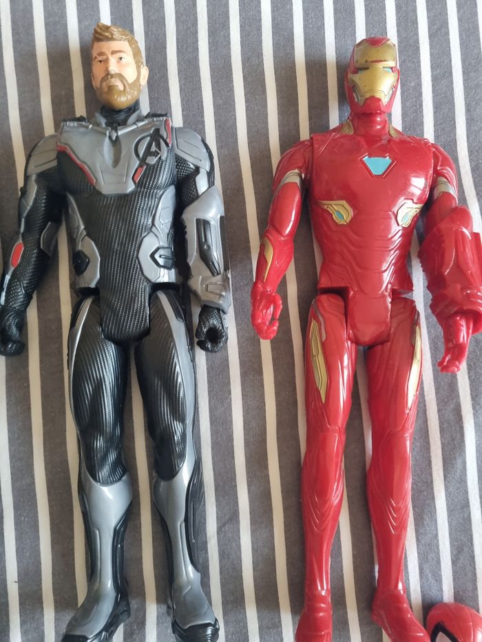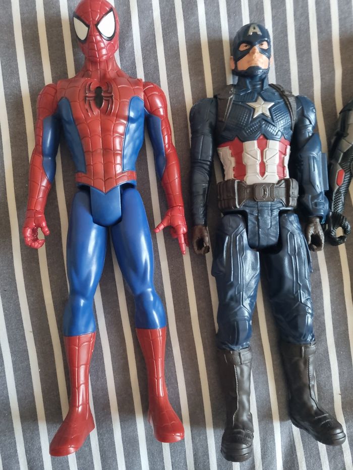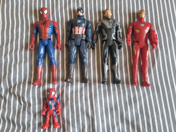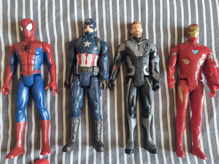 4 grande figurines Avengers (30cm) et une petite spidey . Comme neuve sauf legeres marques d'usures sur le casque de iron man.