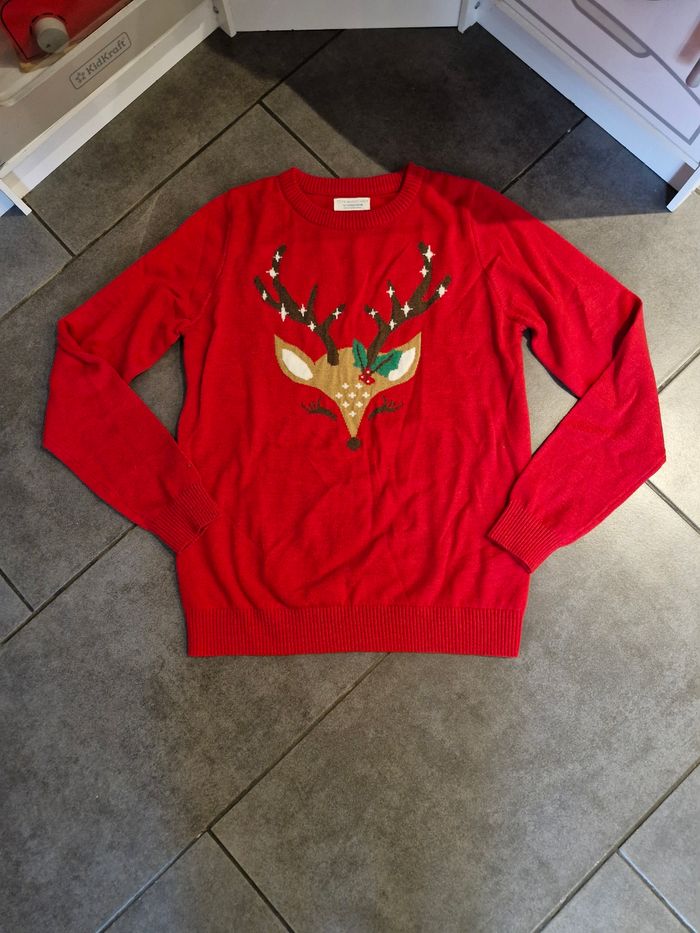 Pull thème Noël fille 👧 Taille 12 ans Marque : Primark Rouge Réductions sur les lots activé ☺️ Bac3