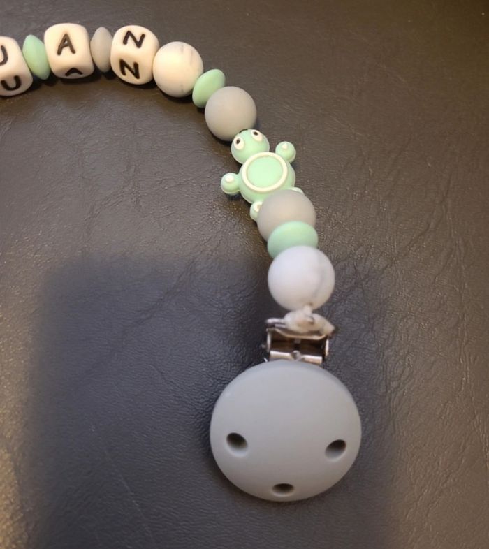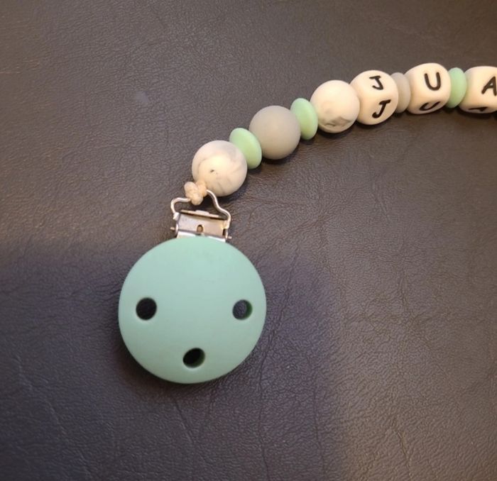 Attache tétine (juan) Menthe /gris #sandrinediversbebe