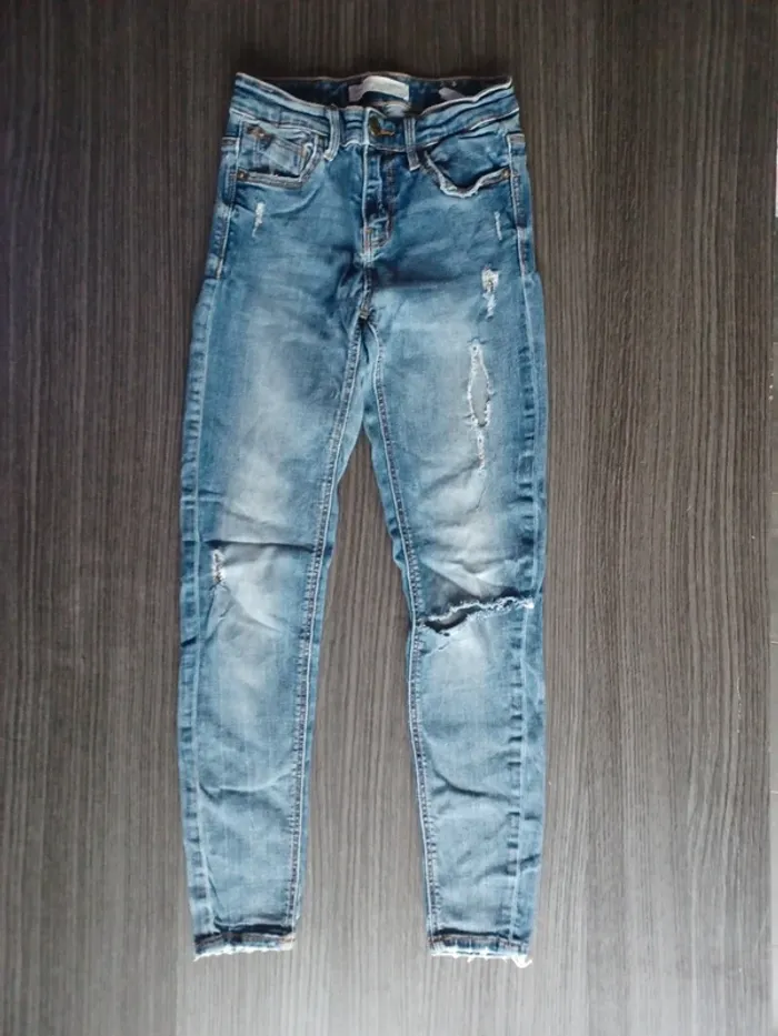 💙Jean destroy💙 STRADIVARIUS Porté quelquefois Bon état Largeur à plat 30cm Taille élastique Longueur 87cm