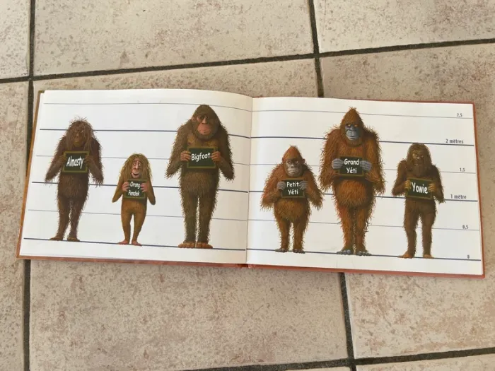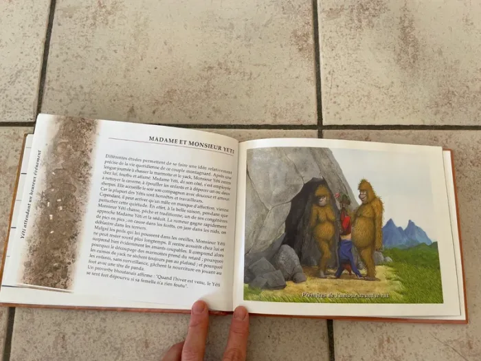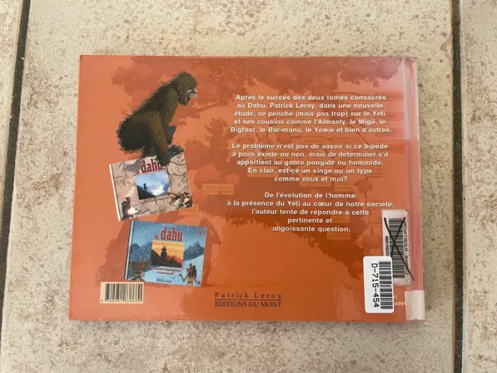Livre Yéti et autres bipèdes poilus (Patrick Leroy) Couverture rigide, livre assez grand (voir la photo par rapport à ma main) Etiquette collée sur la couverture arrière et un tampon (encreur) sur la première page à l'intérieur (pas sur l'histoire, sur la page de garde)