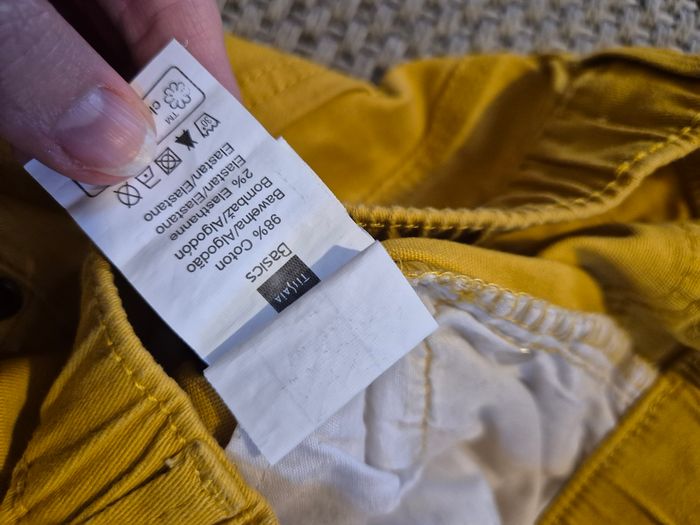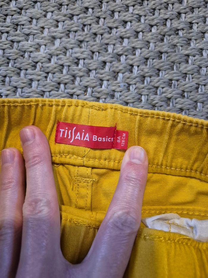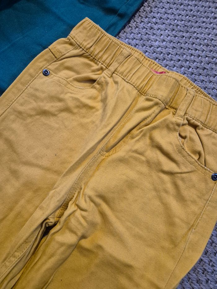 Lot de 2 pantalons assez fin. Jamais portés. Couleur moutarde et vert. Taille 8 ans. Marque Tissaïa. En coton.