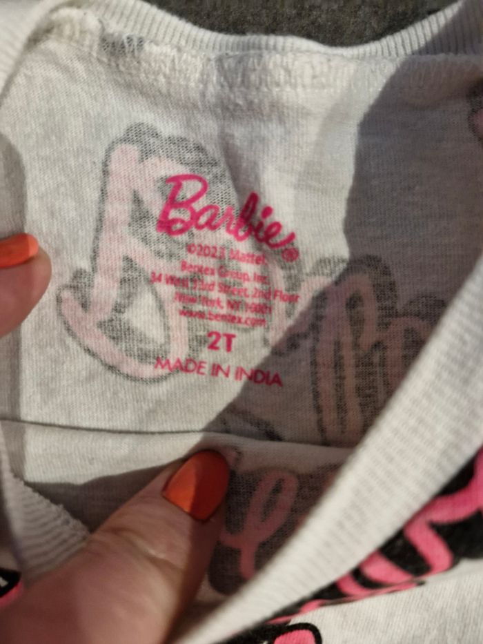 T-shirt manches courtes fille 👧 Taille 2 ans Marque : Barbie Blanc et rose Réductions sur les lots activé ☺️ Bac3