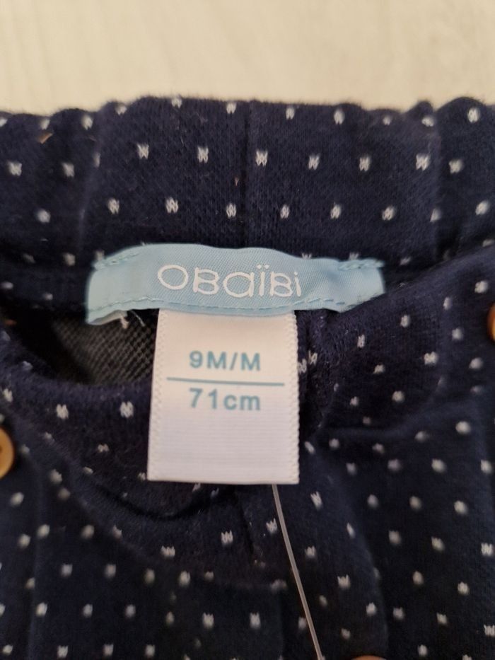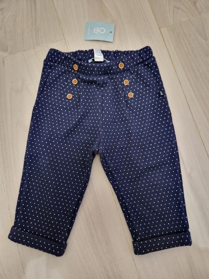 Pantalon fille bleu marine à pois 9 mois Obaibi - photo numéro 2