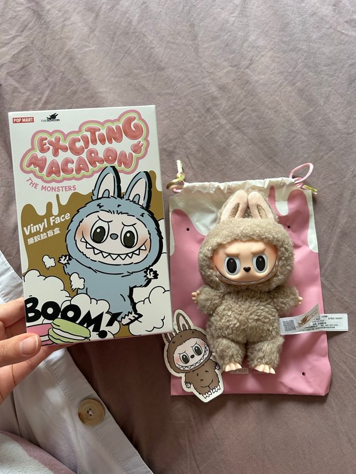Labubu Exciting Macaron Toffee🤎 Labubu The Monsters - Exciting Macaron💕 Authentique, acheté sur l’application Pop Mart❤️ Labubu neuf, juste sorti de la boîte pour la photo📸 J’ai plusieurs Labubu à vendre, ils sont à 25€ mais il y a un code promo Beebs de -30% jusqu’au 5 février(code promo : CHOCOLAT30), cela les fait à 17,50€ l’un🌈 Je vends d’autres Labubu dans mon dressing, n’hésitez pas à faire un lot si il y en a plusieurs qui vous intéresse 🩷