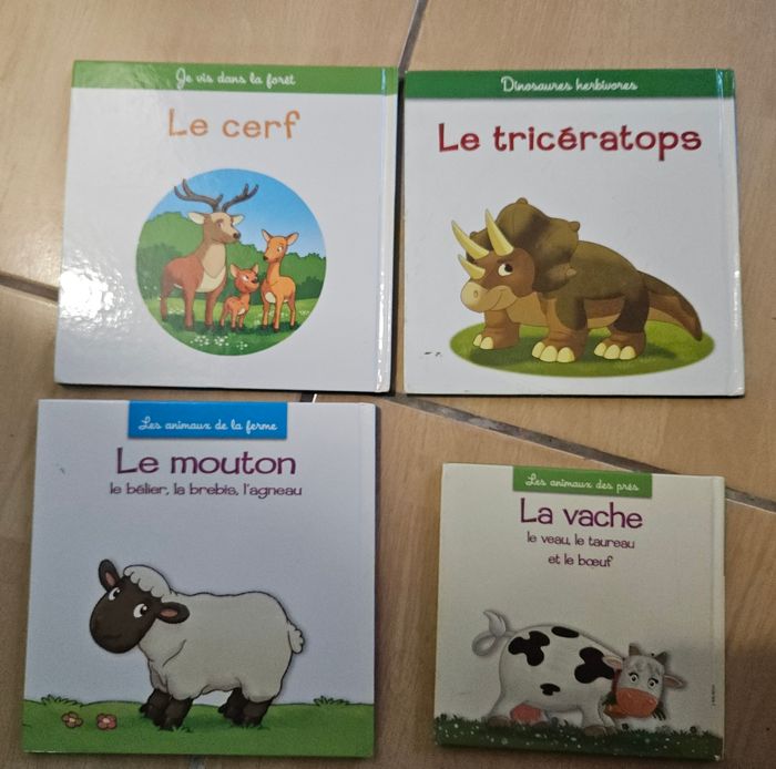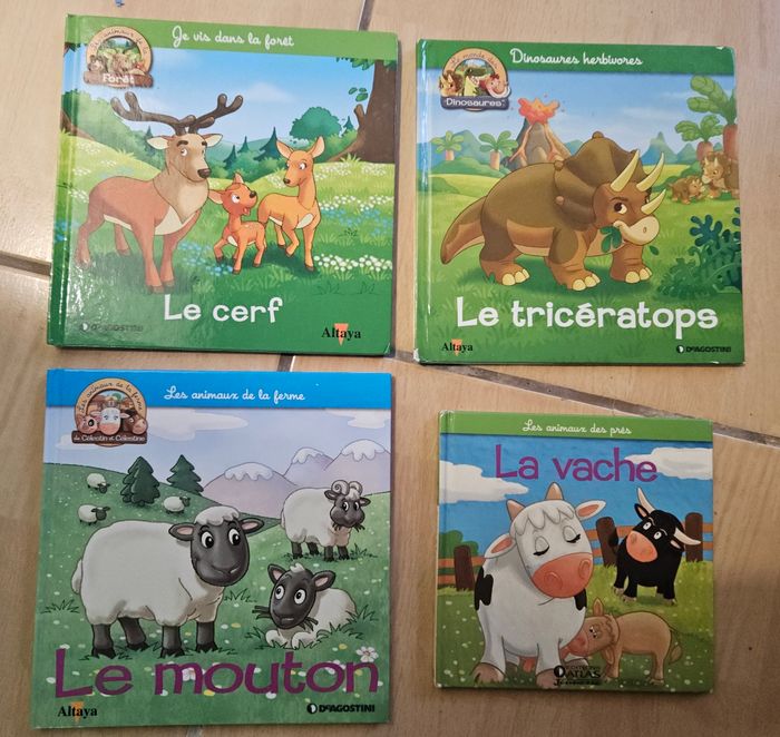 Lot de 4 livres collection Hachette/Altaya : - Je vis dans la forêt : Le cerf - Dinosaures herbivore : Tricératops - Les animaux de la ferme : Le mouton - Les animaux des prés : La vache Des marques d'usure. Remise en main propre également possible sur Gagny quartier Chénay.