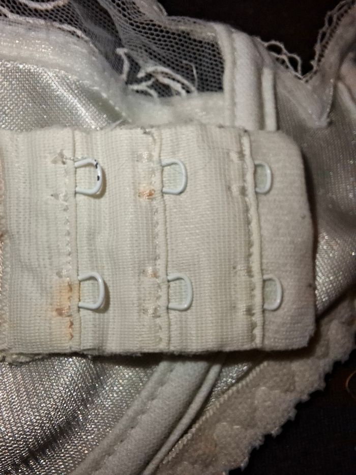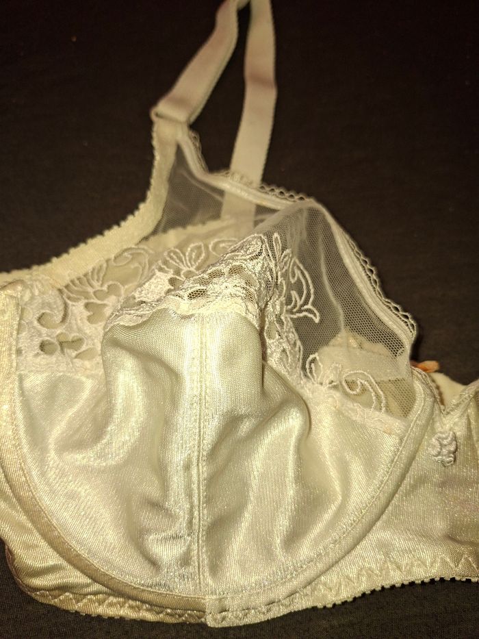 Taille : FR 110 (EU 95 / GB 42) Bonnet : Estimé C Couleur : Blanc / Blanc satiné ​Description : ​Vends un très joli soutien-gorge alliant élégance et maintien. ​Design : Bas des bonnets en tissu satiné brillant et haut en dentelle brodée transparente pour un effet très féminin. ​Maintien : Modèle avec armatures pour un galbe naturel et une bonne tenue. ​Détails : Petit nœud décoratif à l'entre-sein. ​Ajustement : Triple rangée d'agrafes au dos pour un réglage précis. ​État : Porté. Quelques marques d'usage sont visibles sur les agrafes et les bords intérieurs (légères traces de frottement/décoloration). Le tissu reste souple et agréable à porter.