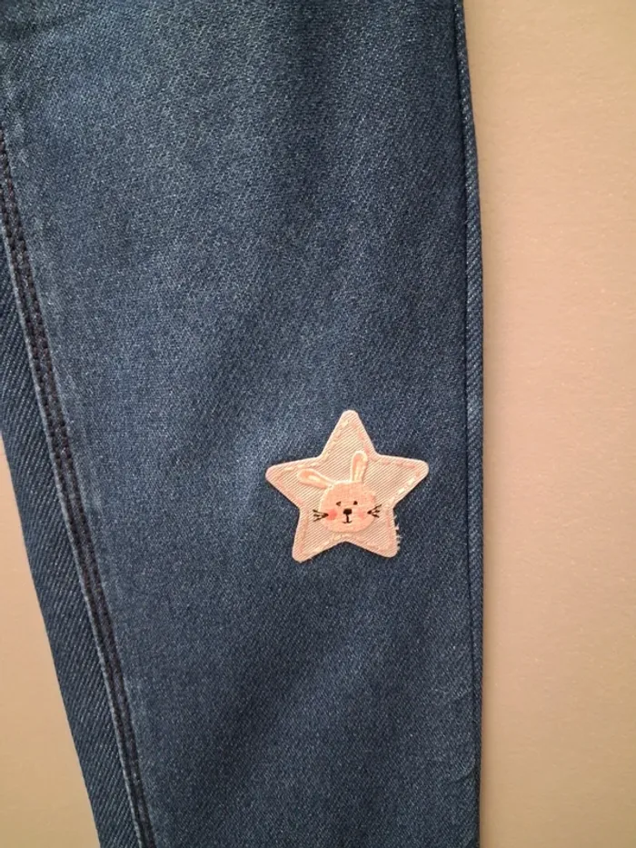 Deux poches à l'arrière. 69% coton, 26% polyester, 5% élasthanne. Patch étoile au genou. N’hésitez pas à visiter mon dressing, j’ai d’autres articles de la même taille.