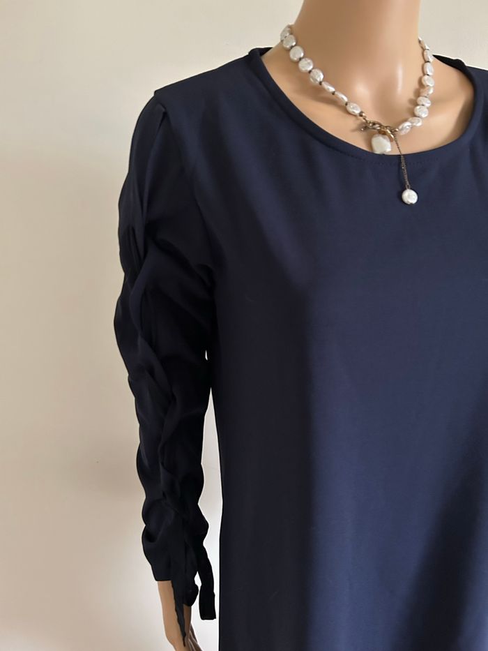 Jolie robe casual mi longue bleue marine, de marque New Collection. Taille unique qui convient jusqu’au 40. Elle est neuve avec étiquette. aisselle à aisselle 50 cms et plus épaule à épaule 38 cms et plus longueur manches 57 cms taille 50 cms longueur depuis épaule 99 cms Le tissu est extensible 95% polyester et 5% elasthanne